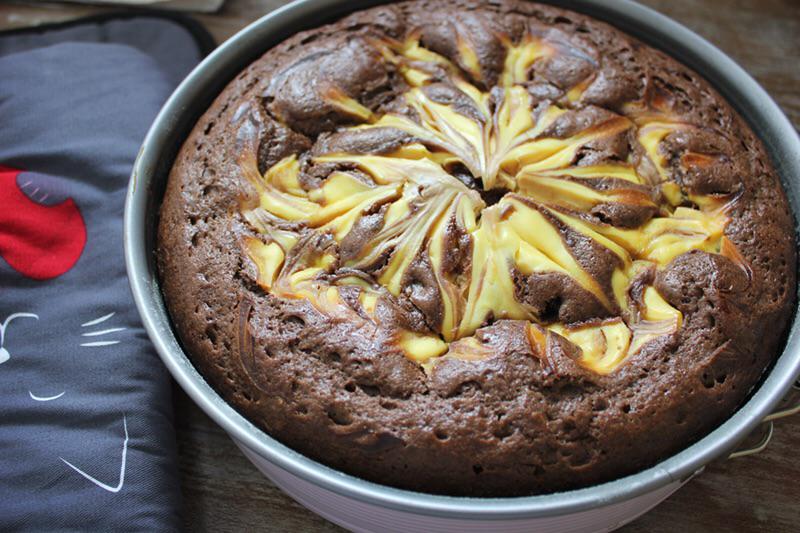 Chocolate Quark Cake / Gently melt the other half of the chocolate and, once it's runny, drop evenly spaced blobs of it onto your quark cheesecake mix.