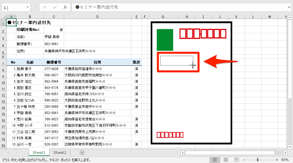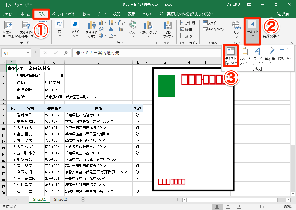 2020年8月11日Excel&Word書籍販売】 ↓紹介動画です。ぜひ見てください https://youtu.be/ral58KjG-r0 【封筒で使用した各設定】 「郵便番号のテキストボックス」 高さ 9.5 ...